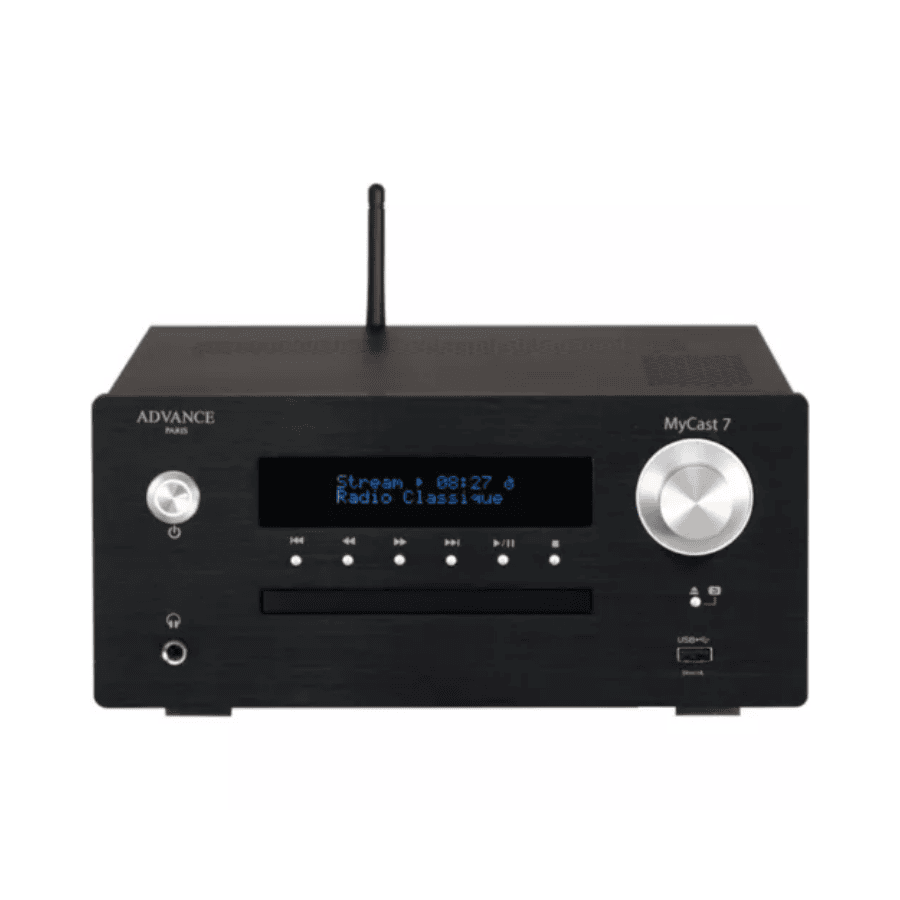 The MyCast 7 is an extremely complete streaming amplifier with a built-in CD player, FM, DAB+ and Internet tuner. This extremely complete metal-built all-in-one from Advance Paris has a compact design and delivers audiophile-grade high-res sound quality. Despite the small size of this all-in-one, the MyCast 7 has sufficient dynamic reserves and has enough power to drive difficult speakers without problems.