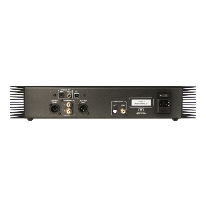 The CD400se and the DR400se models have their chassis made of massif aluminium sides that ensure perfect mechanical inertia. In addition, the original shape has been studied to absorb better all vibrations. The top loading drive specifically developed for the 400 line consists of mechanical elements in steel and aluminium treated against vibrations, decoupled from the frame of the device by four metal spacers. This greatly enhances the accuracy of the laser and the error correction circuits. This construction greatly improves the musical timbres and treble reproduction.