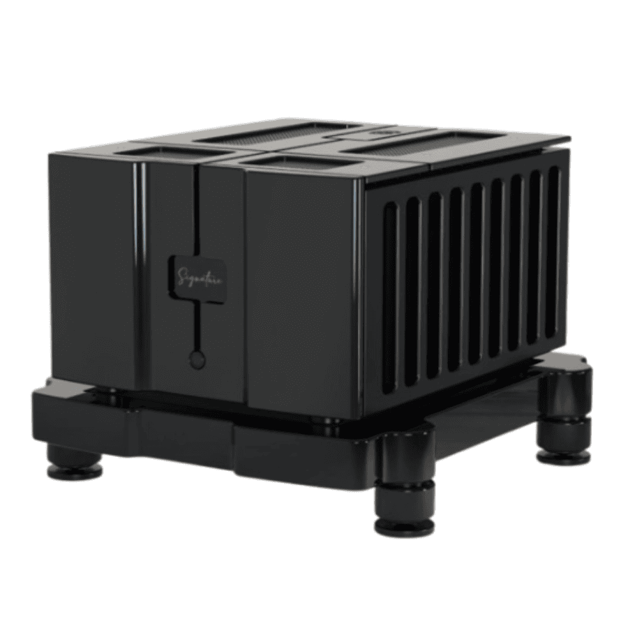 Un étage d’alimentation étudié dans les moindres détails, son surdimensionnement, la qualité des transformateurs et l’énorme capacité du banc de filtres, l’ensemble de l’étage de puissance et l’assemblage des circuits permettent à la signature one de délivrer un message sonore sans faille. Le grave est puissant et sculpté, le médium et le médium-aigu fluides, cristallins et bien présents dans l’espace avec une focalisation instrumentale qui n’a pas d’égale.