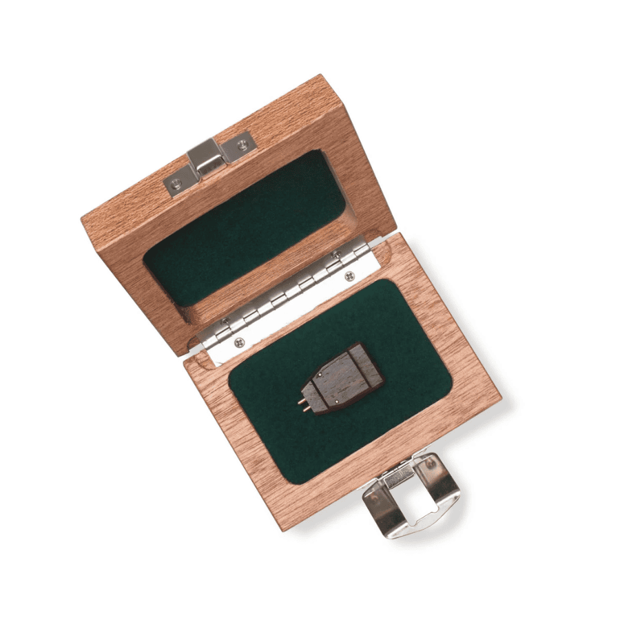 All of the internal magnetic circuit parts are Swiss screw machined or molded metal, which have tolerances on the order of the best Swiss-made watches. The specially designed diamond stylus is mounted on a sapphire cantilever that connects to the stylus generating system. The Aeon3 features a unique system that has the lowest effective moving mass of any cartridge, while Grado’s patented Flux-Bridger generator design creates a superior balance throughout the full frequency spectrum with superb resolution and clarity, which produces an overall truer picture of the music. This is all nestled inside a cocobolo wooden housing.
