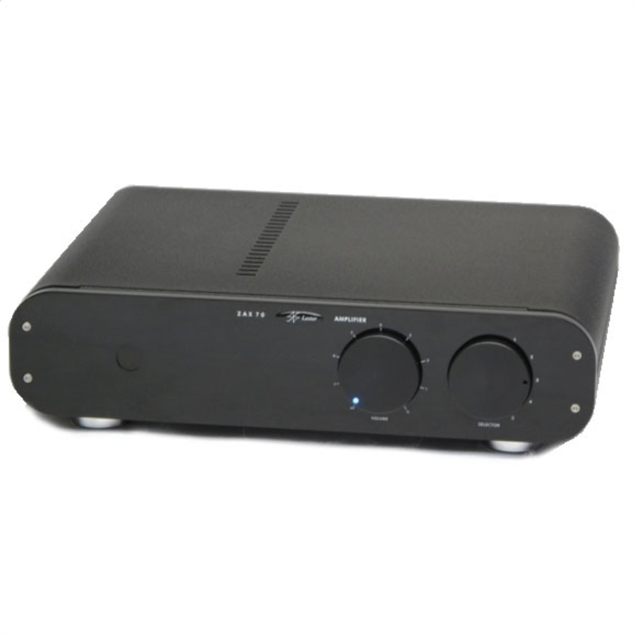 Le ZAX 70 est conçu sur un circuit exclusivement à transistors ; aucun circuit intégré sur le trajet du signal. Les transistors bipolaires ont été sélectionnés pour leur grande capacité en courant : une intensité de pointe de 12 A ! Un unique condensateur est situé sur le trajet du signal, il ne s’agit pas de condensateur électrolytique mais à film de haute qualité. Aucune limitation n’a été apportée sur la capacité en courant de l’étage de sortie qui peut donc alimenter des enceintes de faible impédance de charge.