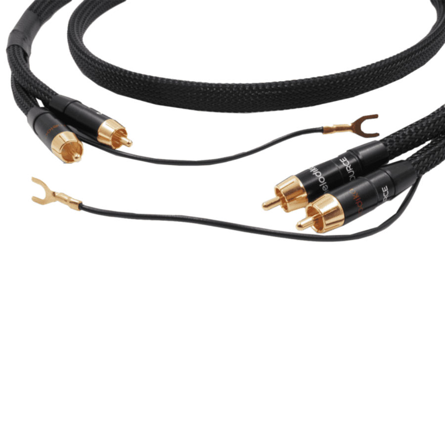 Premium interconnect Melodika MDPHD 2xRCA to 2xRCA with additional ground wire transmits analog audio signal from turntable to pre-amplifier. The construction of MDPHD is based on two twisted conductors covered with a copper braid. Each of the veins has a thickness of 0.35mm2. High-quality shielding with 99% coverage ensures excellent protection against electromagnetic interference. The shielding is made in the form of mesh braid and a conductive coating. Connected to the plug by soldering high quality tin with silver, the contact is very reliable and ensures high quality signal transmission. Plugs are covered with 24K gold. The insulation of the cable is made of polytetrafluoroethylene (PTFE) which has excellent dielectric properties within wide range of temperature and frequency.