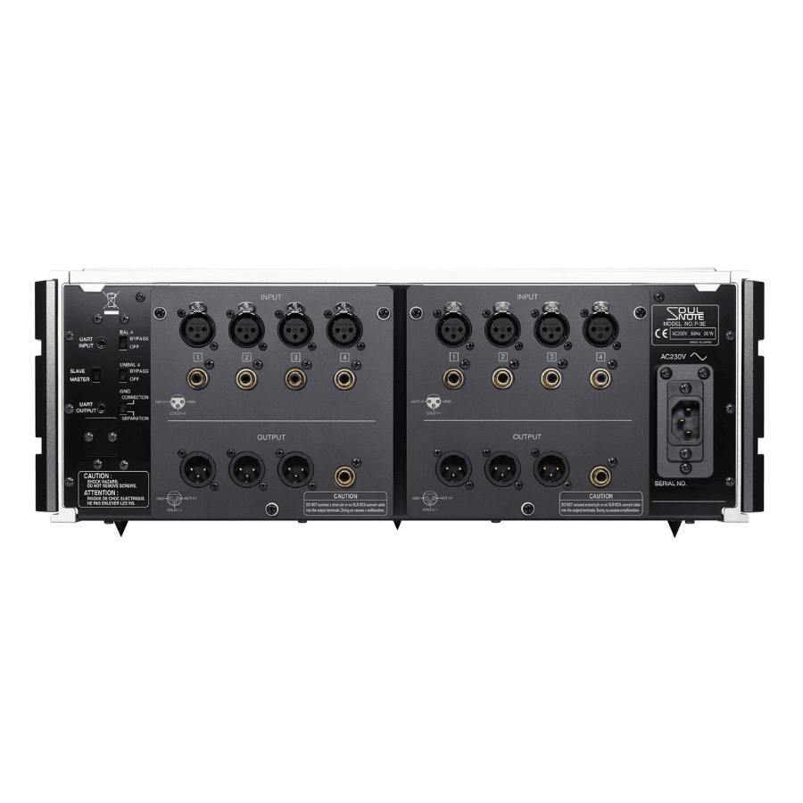 The best possible methods and the highest-quality parts create the best audio volume control. All the resistors in this unit are ultra high-quality, naked foil resistors. The switching relays also use the newly developed RSR-2-12D (Reference SOULNOTE Relay) ultralow loss custom relay. Volume control is configured with 144 steps in 0.5 dB intervals. Vibrancy and sound quality remain unaffected, even when lowering the volume.